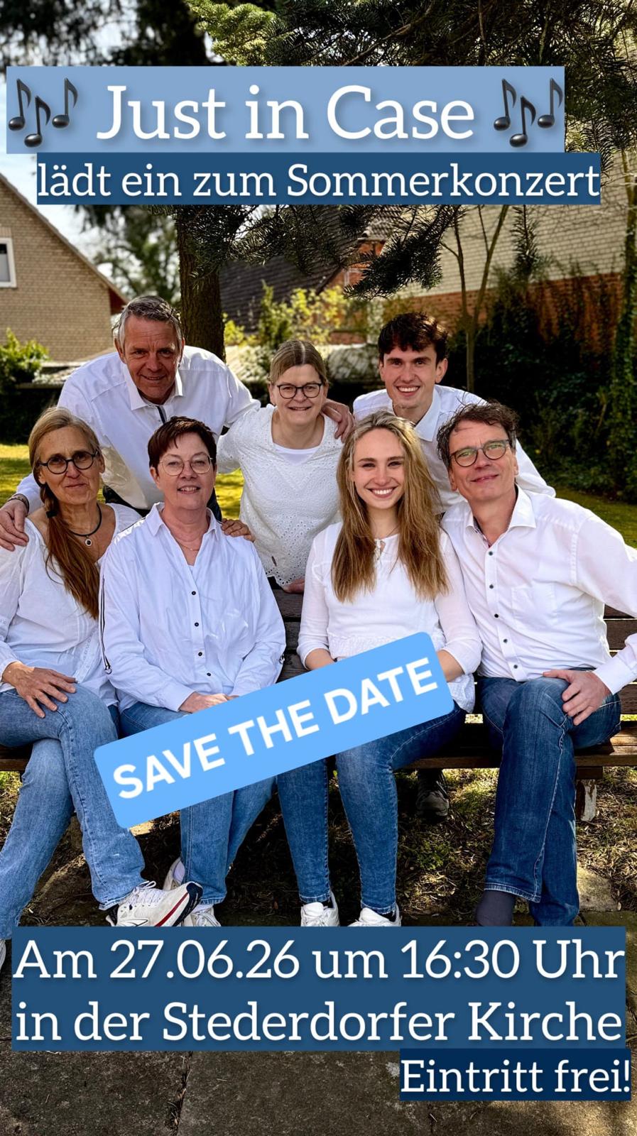 Wie der Name schon sagt (Just in Case à… für alle Fälle), ist das Repertoire sehr vielfältig und abwechslungsreich, so dass für jeden Geschmack das Passende dabei sein dürfte. Von klassischen Stücken und Kirchenliedern, über gefühlvolle Pop-Balladen bis hin zum Schlager – bringen sie eine bunte Mischung auf die „Bühne“! Just in Case freut sich auf den kommenden Auftritt in der Stederdorfer Kirche nimmt Sie mit in die vielseitige Welt der A-capella-Musik!